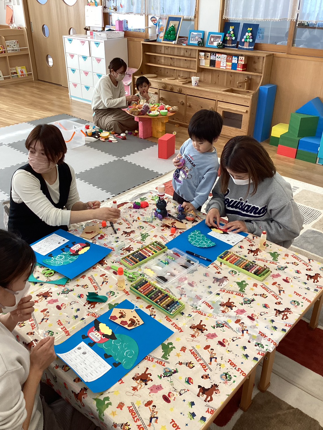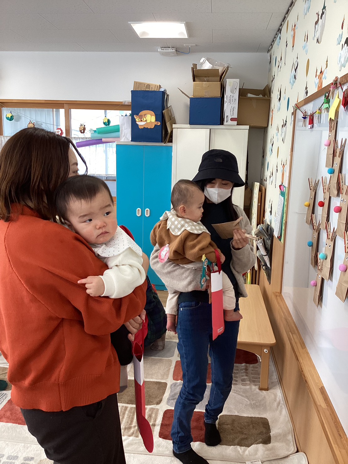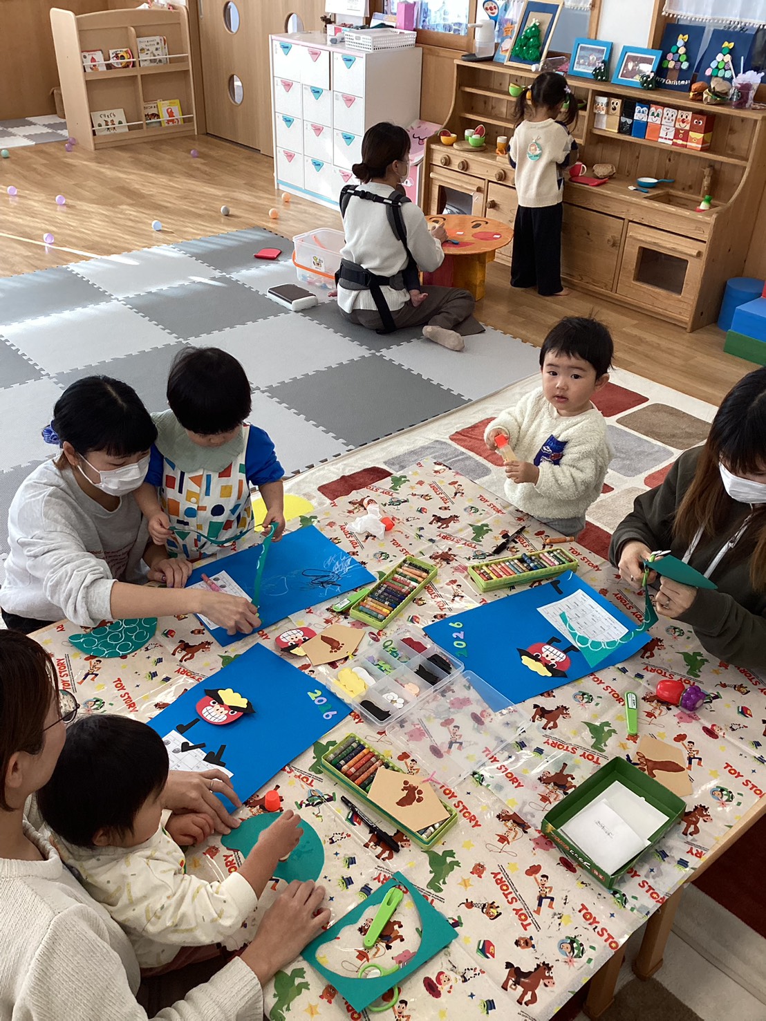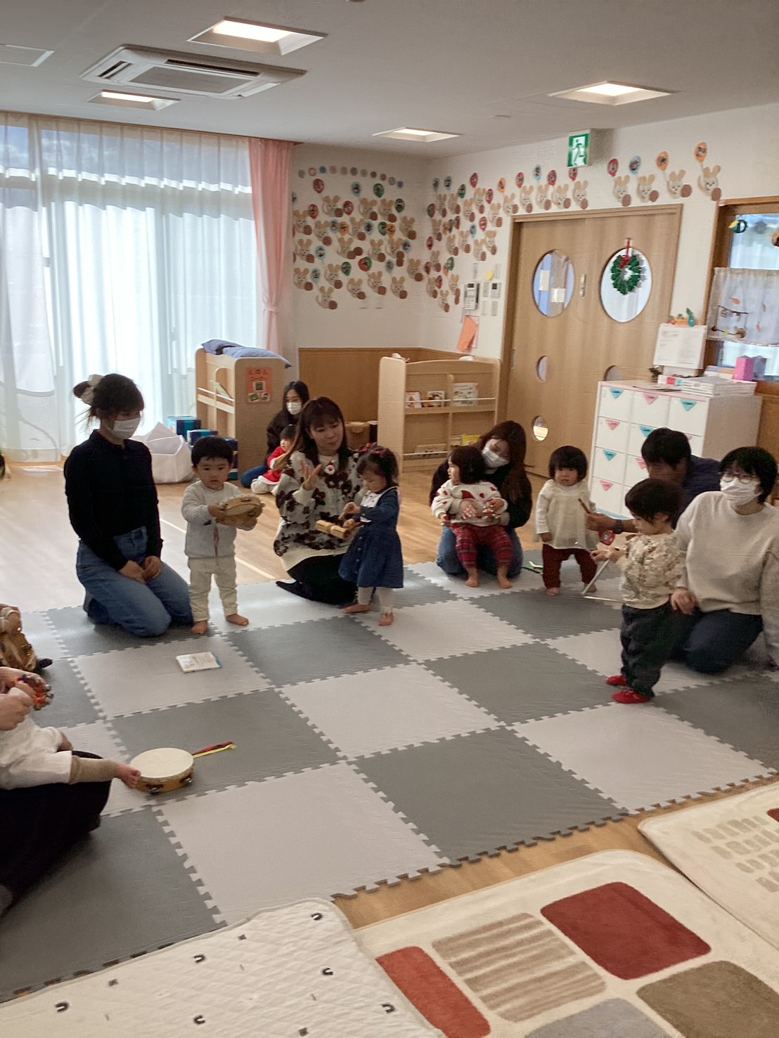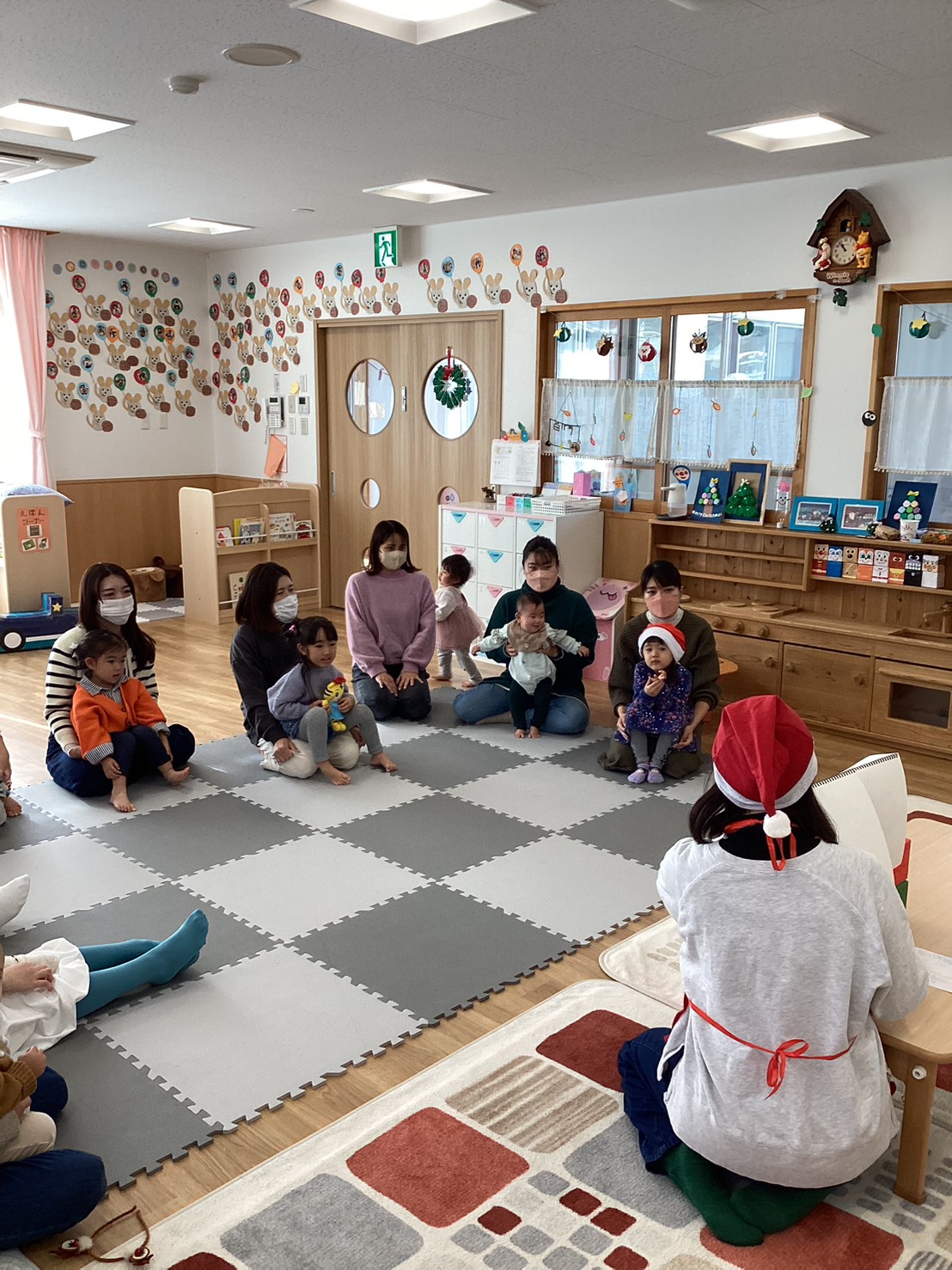 <主な活動> 赤ちゃんの日 園庭開放 身体測定 リズム遊び 季節の製作 絵本の読み聞かせ リズム体操 園外活動(お散歩、公園、果物狩り等) 運動会 クリスマス会等